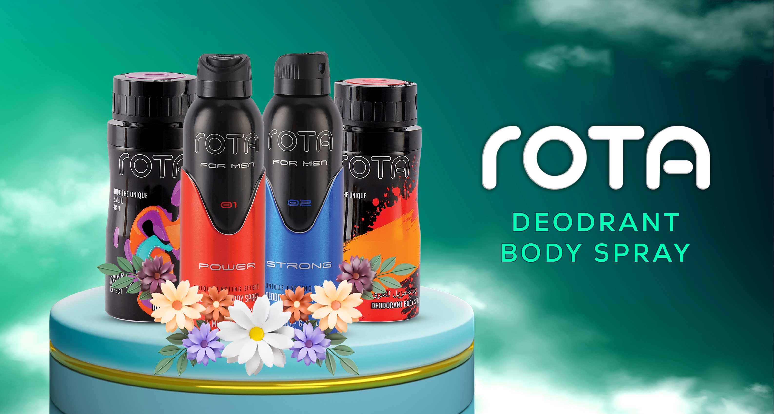"Rota's Deodorant Body Spray: Stay fresh all day with our invigorating scent and long-lasting protection. Feel confident and revitalized with our effective odor-fighting formula, crafted for enduring freshness."