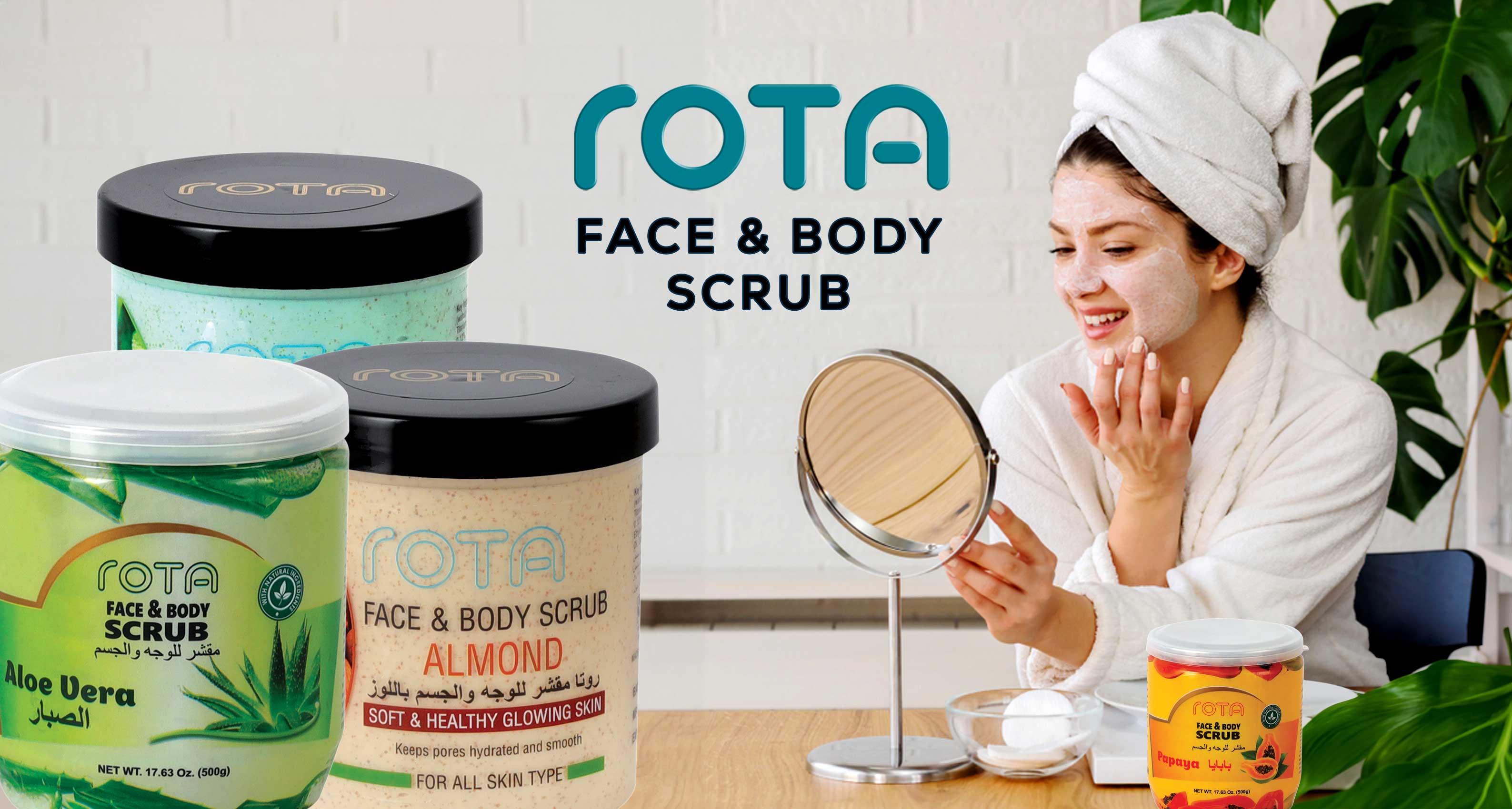 "Rota's Face & Body Scrub: Reveal smoother, refreshed skin with our gentle exfoliating formula. Suitable for face and body, our scrub effectively removes impurities, leaving your skin feeling rejuvenated and revitalized."